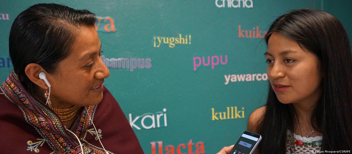 Doch die Ausbeutung und Zerstörung der Amazonasregion endet nicht an nationalen Grenzen. Daher arbeitet die DW Akademie an einer gemeinsamen Regionalstrategie mit Partnerorganisationen in Ecuador und Peru. In Ecuador bietet das Netzwerk für Bürgermedien, CORAPE, öffentliche Dialoge an, die Entscheidungsträgerinnen und -träger mit Betroffenen zusammen bringt und als öffentliche Radioformate aufgezeichnet werden. In Peru setzt die interkulturelle Nachrichtenagentur SERVINDI indigene Themen auf die nationale Agenda, durch ein Netzwerk von indigenen Journalistinnen und Journalisten und Community-Medienschaffenden.