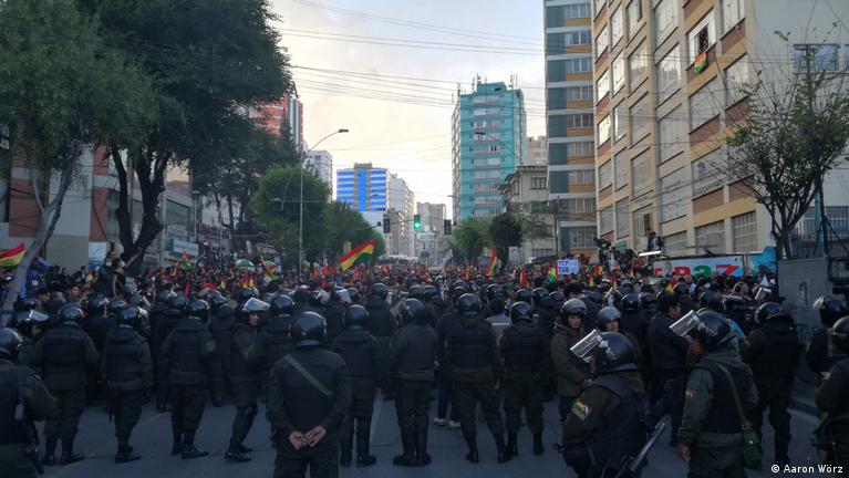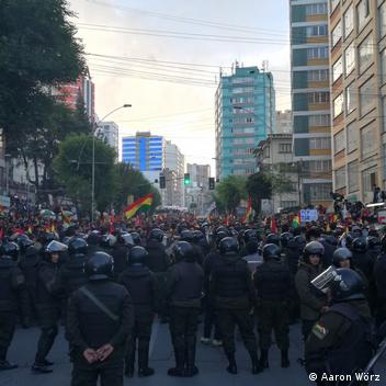 Bereits in den ersten Tagen nach der Wahl begann die Opposition mit Straßenblockaden. Nachbarschaften organisierten sich über soziale Netzwerke und blockierten wichtige Hauptverkehrsstraßen, um so Druck auf die Regierung auszuüben. Den Blockaden folgten mehrtägige Generalstreiks und das zunächst friedliche Protestklima fing langsam an zu kippen, nachdem Morales seine Anhänger aufgefordert hatte, "die Demokratie auf der Straße zu verteidigen". Die Dynamik war eine besondere: Einerseits zeigte sich die Polizei erkennbaren Pressevertreterinnen und -vertretern gegenüber sehr kooperativ, andererseits sparte sie nicht beim rücksichtslosen Einsatz von Tränengas gegen die Demonstrierenden.