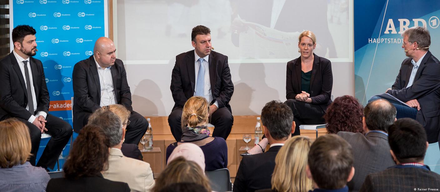 Medien International ist eine Veranstaltungsreihe der DW Akademie in Kooperation mit dem ARD-Hauptstadtstudio. Die DW Akademie unterstützt derzeit Journalisten und Menschenrechtsaktivisten in über 20 Krisenländern weltweit durch Ausbildung, Training und Interessensvertretung – darunter auch Journalisten im Jemen.