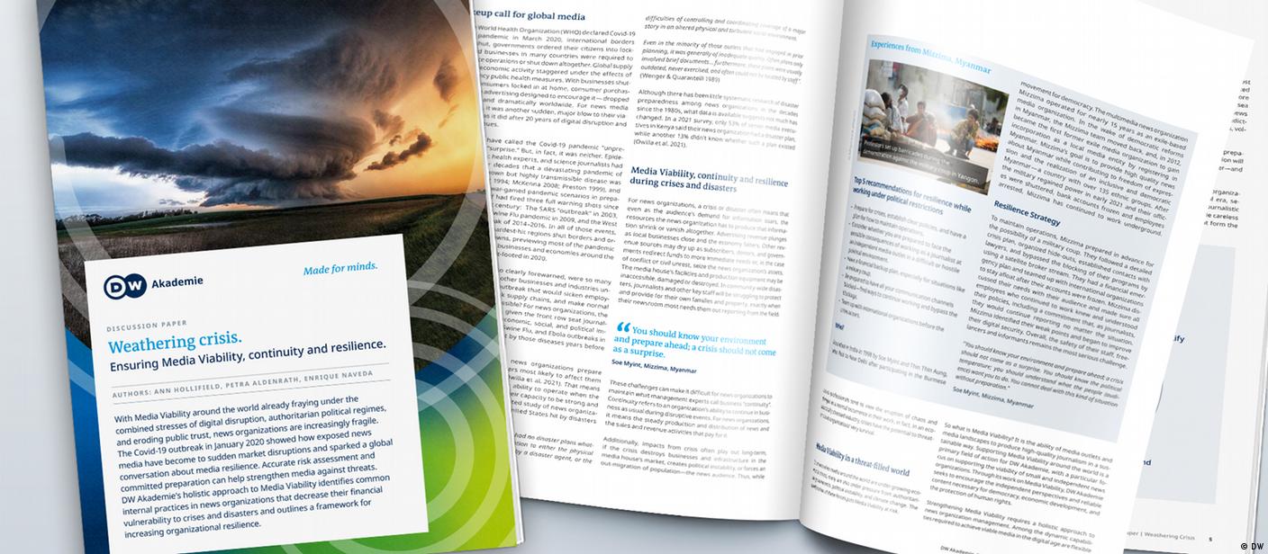 The discussion paper stresses the importance of careful preparation to increase organizational resilience. It identifies best practices of news organizations to decrease their vulnerability to crises and disasters.