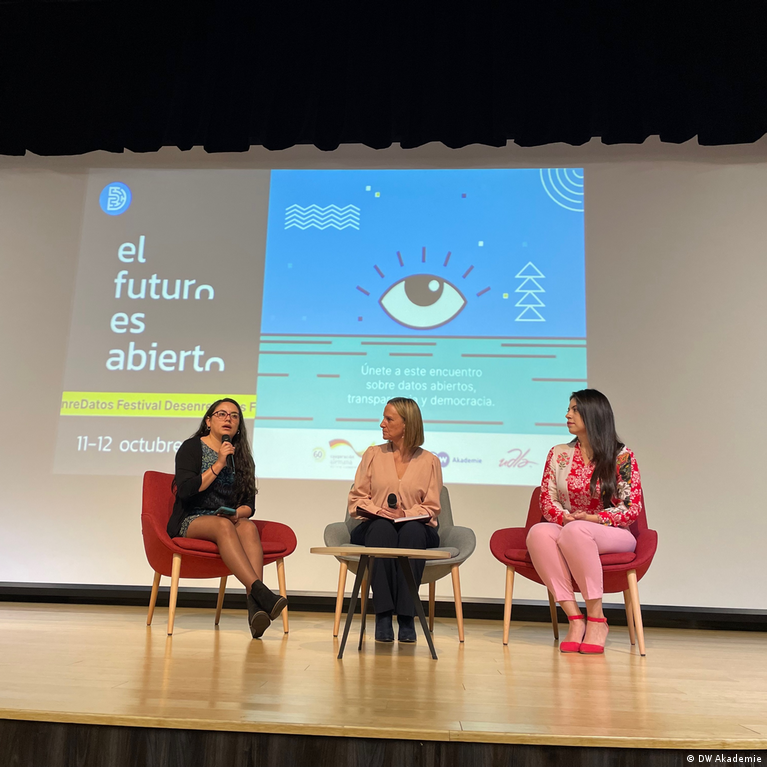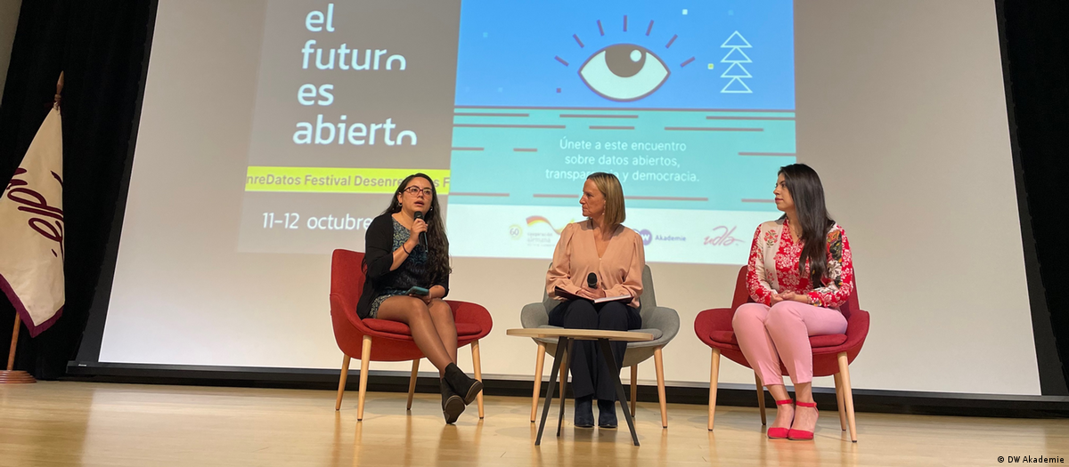 PreviousFestival DesenreDatos: un encuentro para apostar por la transparencia © DW AkademieQuito se convierte en la capital de los datos © DW AkademieTrabajo colaborativo para ofrecer mejor información © DW AkademieVisibilizar proyectos que fomentan el acceso a la información © DW AkademieDescubriendo iniciativas para impulsar la transparencia© Cooperación Alemana GIZHistoriDatos: contando historias con datos © DW AkademiePremio a la investigación de datos © DW AkademieUnión por el fomento del uso de datos y la transparencia© Cooperación Alemana GIZ7 imágenes25 de mayo de 2023DW Akademie, en alianza con la UDLA y la Cooperación Alemana GIZ, celebró el Festival DesenreDatos en Quito, Ecuador, para poner de relieve la importancia del acceso abierto a los datos públicos y la transparencia.